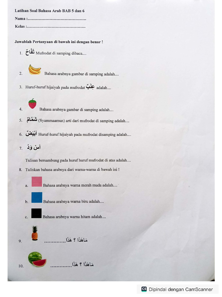- "Soal Ujian Bahasa Arab Kelas 1 SD Akhir Semester 2"